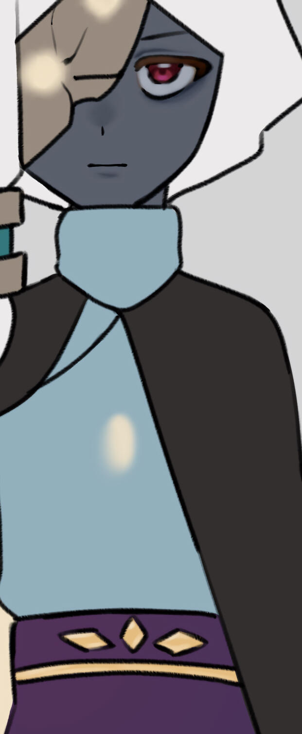 Halite, Hal for short, is a gem who works as a librarian. They are never able to touch water since they are easy to melt in water or humid places, and they have a really low toughness, means they shatter easily. Because of these, they often are in the library and they know about all books there very well.